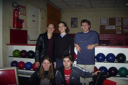 I went bowling tonight with Johanna, Renata, and Amandine, Bernadette and Cédric, three BTS students from Presles who are Renata's neighbors. Johanna brought her digital camera, so I am instantly able to bring you shots from our outing, where I came in fourth with 78 points, having been in first place until the 8th frame. As if you cared.